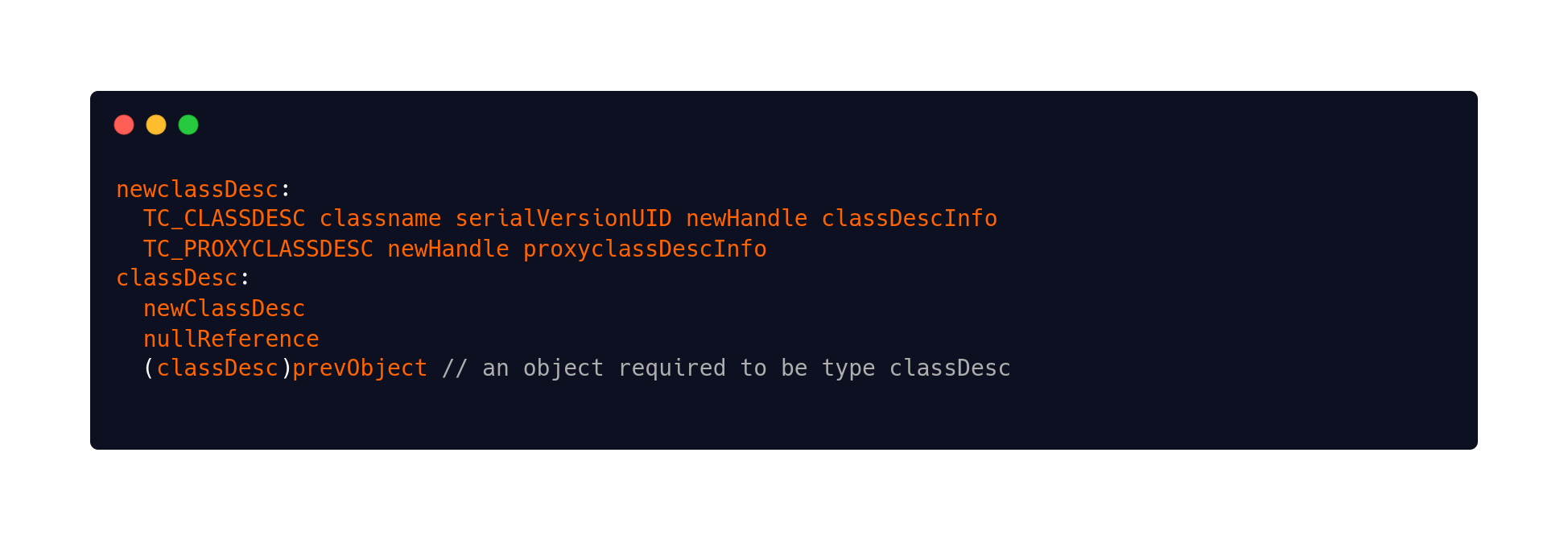 - newClassDesc: class definition